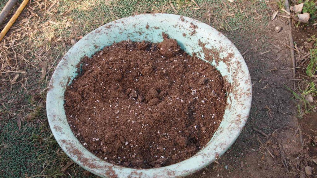 培土を容器に移したところ