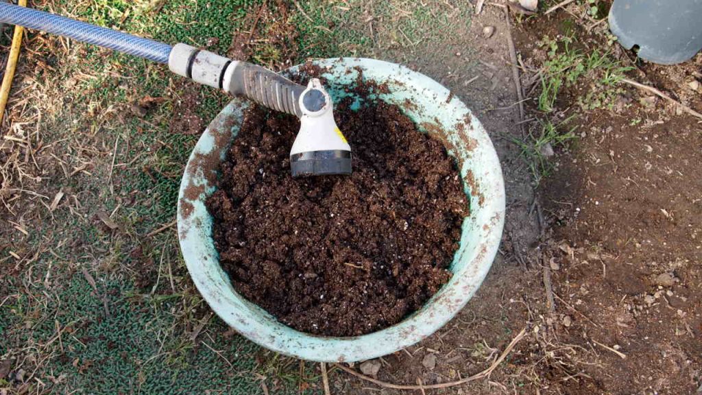 培土を水で湿らせたところ